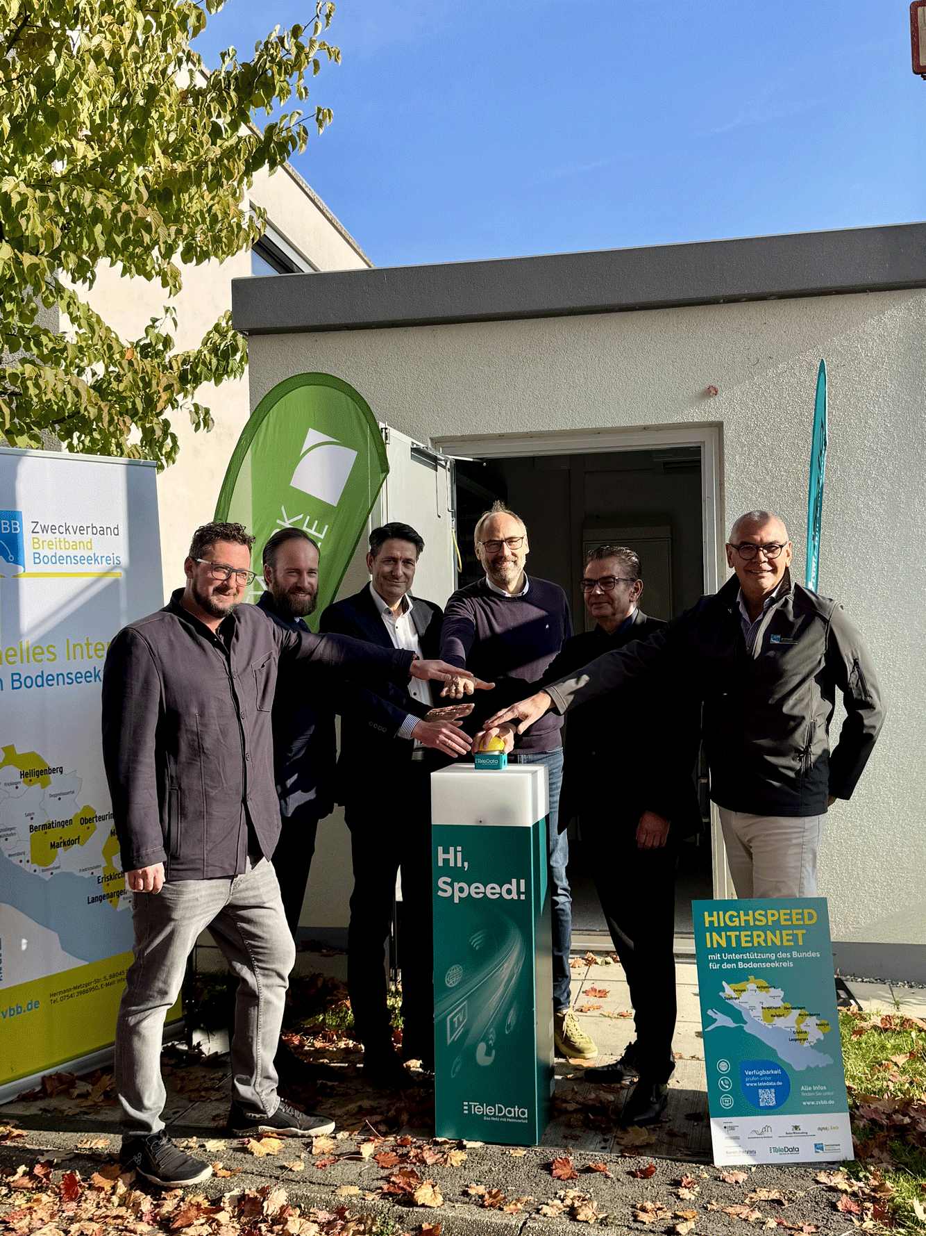 Bei einer Zusammenkunft aller Projektbeteiligten sowie den Fördermittelgebern wurde nun die Inbetriebnahme gefeiert. Hierbei kamen die Vertreter in Langenargen zusammen. Gemeinsam gaben sie mit einem Druck auf den TeleData-Buzzer auch den symbolischen Startschuss für die neu gebaute Dateninfrastruktur. „Wir freuen uns sehr, dass wir mit diesem Knopfdruck jetzt so richtig loslegen dürfen. Die Bürgerinnen und Bürger können von uns starken Service, einmalige Angebote und vor allem turboschnelles Internet erwarten“, freut sich Armin Walter, kaufmännischer Geschäftsführer bei TeleData. „Interessierte dürfen jetzt direkt auf unseren Kundenservice zugehen oder können einfach bequem den Online-Verfügbarkeitscheck unter teledata.de/verfuegbarkeit nutzen.“ Auch der Projektträger und die Vertreter vom Land freuen sich über diesen Meilenstein: „Der geförderte Glasfaserausbau soll nicht die Telekommunikationsunternehmen vom Markt drängen – im Gegenteil, wir packen es zusammen an. Und wie wunderbar das klappt, sehen wir an diesem Projekt in Langenargen“, so Thomas Wahl vom Projektträger PWC.